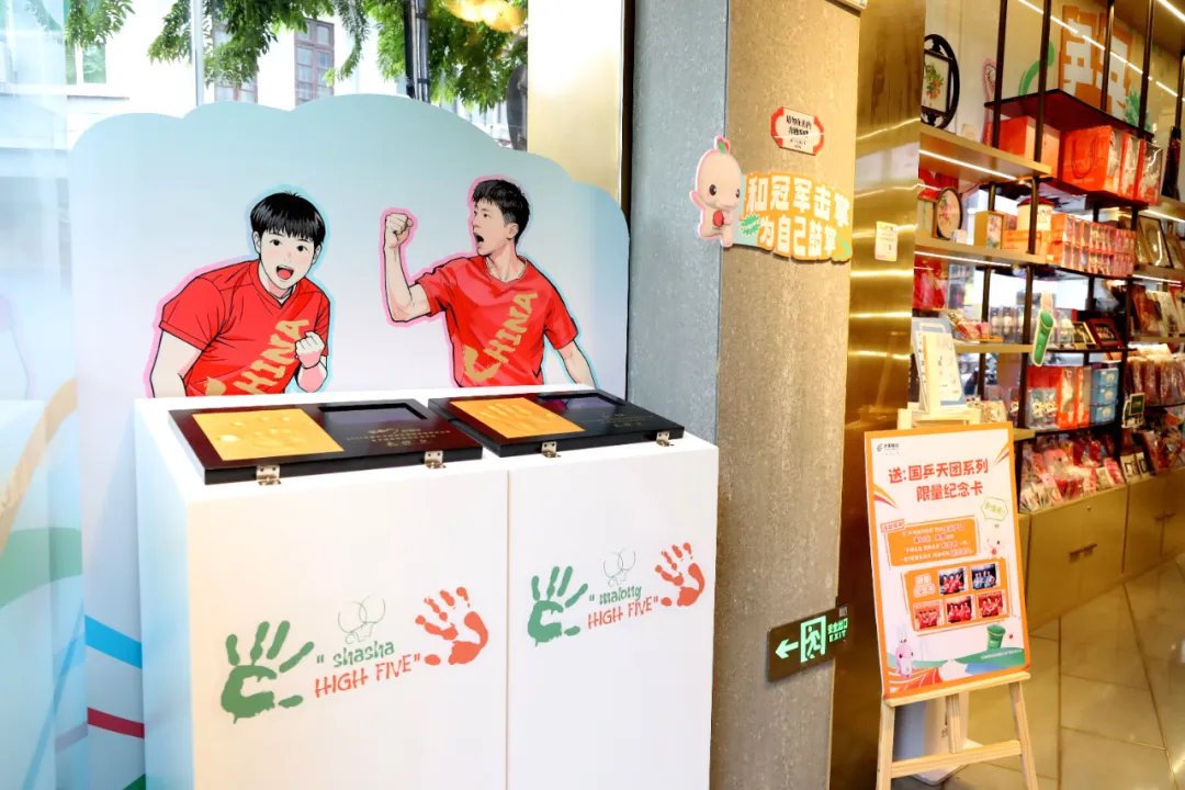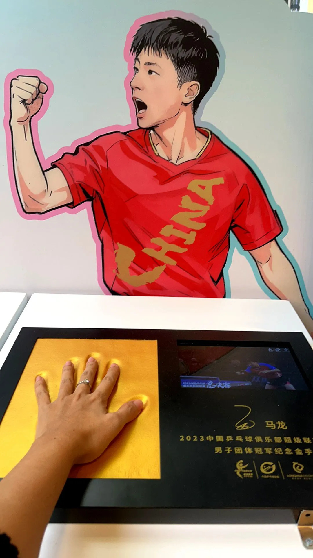 ——沉浸互动,手印打卡乐在其中。现场特别设置孙颖莎、马龙手印展示区,游客可模拟击掌合影,增强参与感与趣味性。