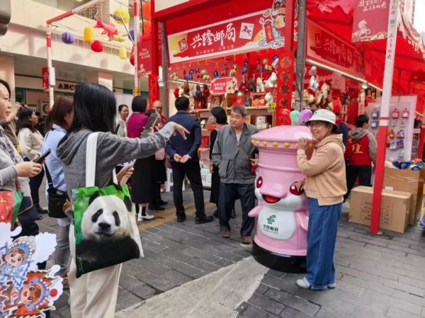这是全国首个“大湾鸡”主题邮筒。圆滚滚的身材、好奇的眼神,往花市一站,立刻成为全场焦点。市民们在明信片上写下对亲友的牵挂、对新年的期许,投入“大湾鸡”好运邮筒。现场还开展“邮点意思”集章活动,每封信件还可加盖“邮运、邮财、邮康、邮睦、邮缘”五福纪念章,外加万能福章和隐藏款好运章。一戳一愿,信笺成了独一无二的新春幸运符。