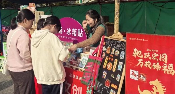 从广州北行至清远,这里的迎春花市也迎来一场邮政的春日约会。现场搭起的“春日邮驿”里,免费派发的主题明信片被市民一笔一划填满,寄往远方的思念随邮筒启程。展台上,以清远地标、乡土风情为灵感的冰箱贴成了人气王,不少人一买好几套,留作纪念或赠予远方的朋友。