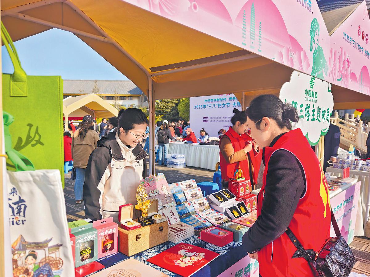 近日,云南省大理白族自治州城区邮政分公司将大理三塔主题邮局“搬”进当地“金花好物优选”主题集市,以特色文创邮品为纽带,将白族民俗风情与邮政服务融为一体,为广大市民带来一场融合邮政文化、非遗传承的特别体验。